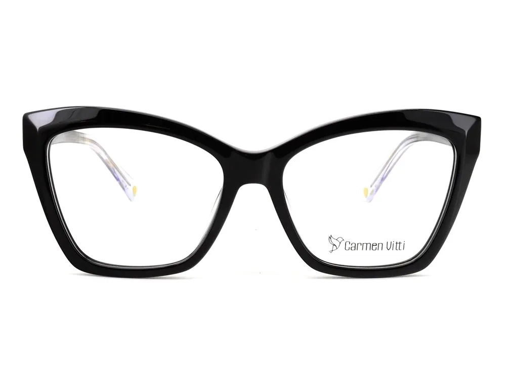 Óculos de grau feminino com armação de acetato, laterais destacadas e com leve “puxadinho” que lembra muito os óculos retrô, tendência mundial. A marca Carmen Vitti traz design exclusivo, acabamento de qualidade superior e muito conforto no dia a dia. O que define a marca Carmen Vitti é a dinâmica.