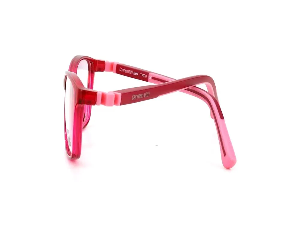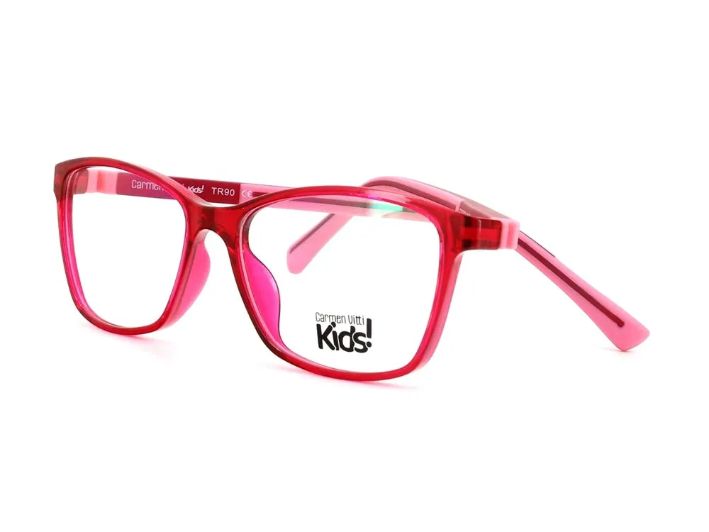 Óculos de grau infantil com armação de acetato e hastes nylon. As crianças absorvem quase 90% de tudo que aprendem através de seus olhos. O uso de uma armação confortável é muito importante! A armação de acetato se ajusta bem ao rosto, pois não tem ponteiras nas hastes e nem plaquetas na região nasal, oferecendo mais conforto para quem usa. O que define a marca Carmen Vitti é a dinâmica.